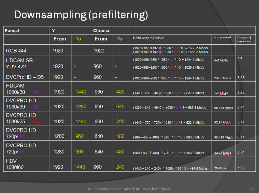 used as a reference, but that would be a 3:0.5:0.5 color sampling for HDV,